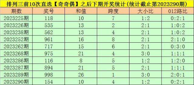 5。下期奖号跨度分别开出:7、2、4、8、6、4、5、5、1、4,其中跨度012路比为1:5:4,大小比5:5,奇偶比为4:6,本期适当关注奇数跨度开出,参考跨度5。