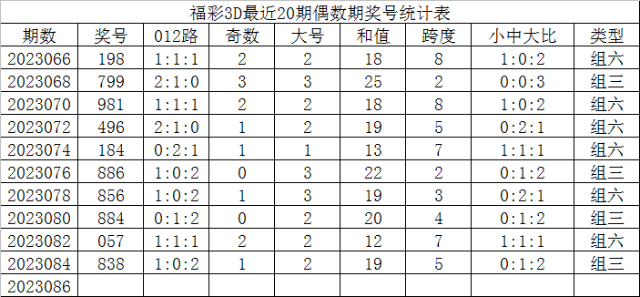 福彩3D最近20期偶数期奖号为: