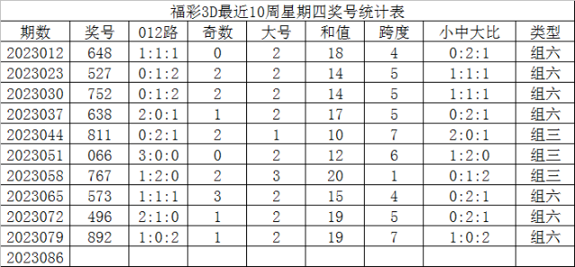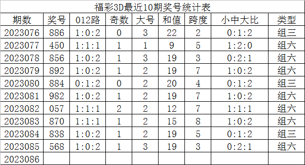 福彩3D第2023086期发哥推荐: