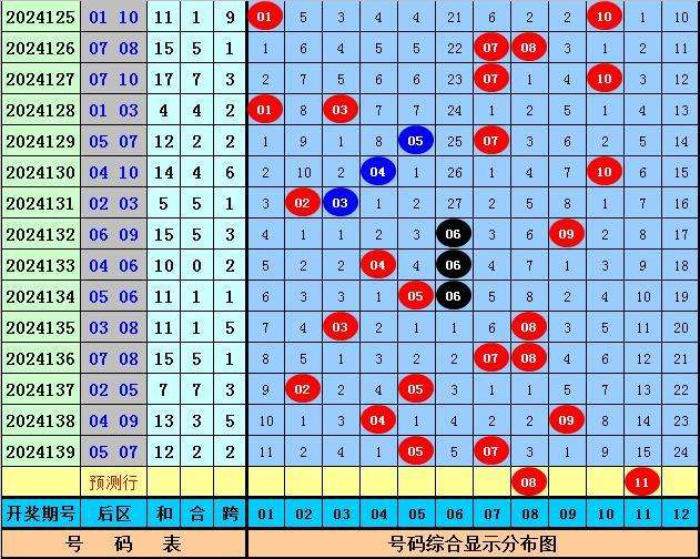 三少第2024140期体彩大乐透后区尾数分析:上期后区开出奖号05和07,奖号尾数为2路和1路,本期后区排除0路尾数号码,五码参考01、08、10、11、12。