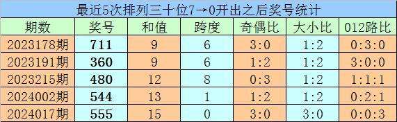 1、最近两期排列三十位号码开出号码分别为7和0,历史上十位号码连续两期同时出现号码7和0的奖号共开出75期。最近五次下期开出号码为:711、360、480、544、555;