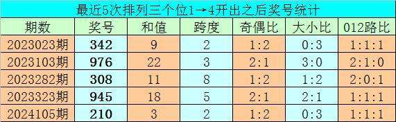 1、排列三前两期个位分别开出号码1和4,历史上个位号码连续两期分别出现1和4时,共有64次。在最近5次出现时,其下期分别出现号码:342、976、308、945、210;