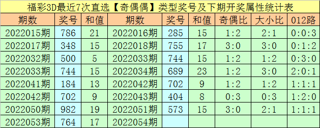 开奖回顾:福彩3D第2022054期奖号开出585。奖号形态开出组三,和值开出18,跨度开出3,奇偶比开出2:1,012路比开出0:0:3,大小比开出3:0。