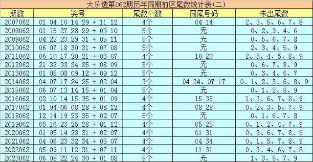 历史上大乐透第062期开出17次奖号,本期第2024062开奖: