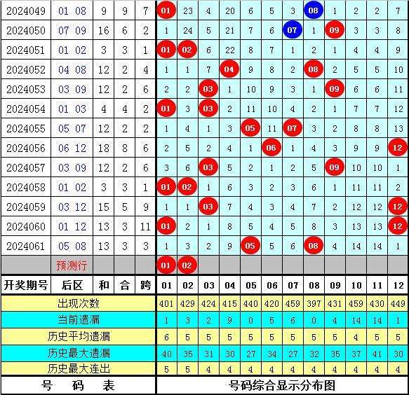 上期回顾:大乐透第2024061期开出奖号:01 12 19 31 33 + 05 08,前区包含4个尾数:1、2、3、9,后区开出一奇一偶、一大一小组合。