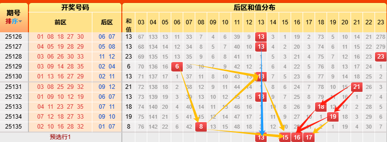 接下来我们来看前区小大、奇偶、质合、和值分布图: