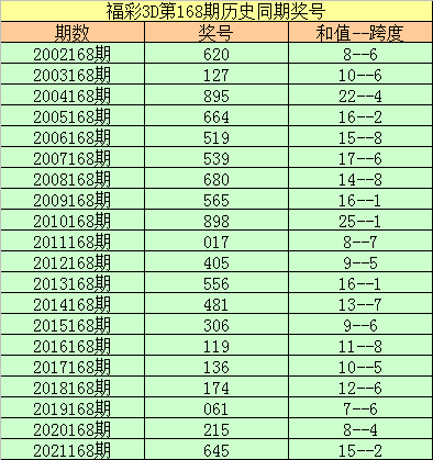 福彩3D上期奖号为783,去年同期与今年同期前20期奖号对比。