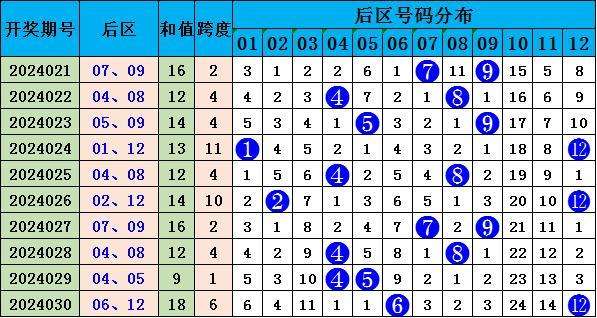 前区奇偶:上期前区奇偶比为3:2,最近10期前区奇偶比为20:30,本期注意前区奇码走冷,奇偶比看好开出2:3。