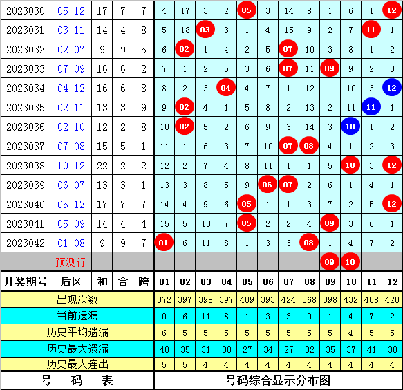 第六位:上期开出奖号01,前10次该位开出号码01之后,其下期分别开出奖号:03-07-01-01-01-01-02-08-11-03,其中号码012路比为2:5:3,质合比为9:1,奇偶比为8:2,大小比为3:7,本期第六位注意奇数号码,精选一码09。