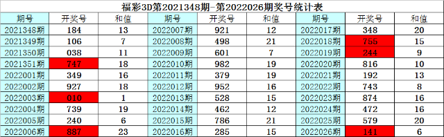 开奖回顾:福彩3D第2022026期奖号:141,百位号码遗漏4期、十位号码遗漏3期、个位号码遗漏16期,遗漏总值为23期。