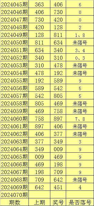 结合其它参数来看,福彩3D第2024070两码关注48、78重点关注48,独胆看好8。