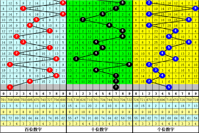 2、奖号质合比分别开出:2:1、3:0、1:2、0:3、1:2、0:3、1:2、1:2、2:1,总质合比开出11:16,其中有2期奖号质合比和上期奖号质合比相等;