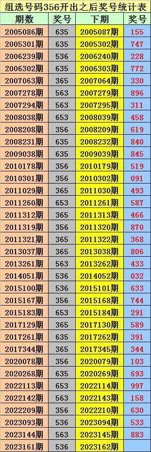 上期回顾:排列三第2023161期开奖号码为536,历史上组选出现35次,直选出现5次。