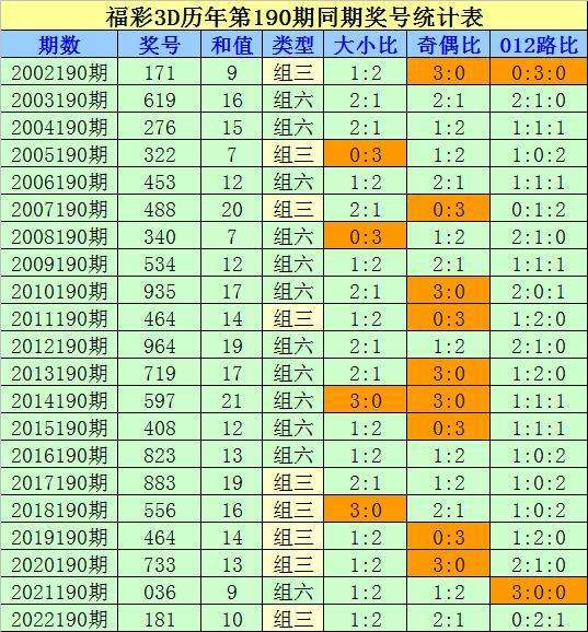 组选类型判断:在第190期历史同期开奖中,组六开出12次,组三开出9次,今年同期看好开出组六号码。
