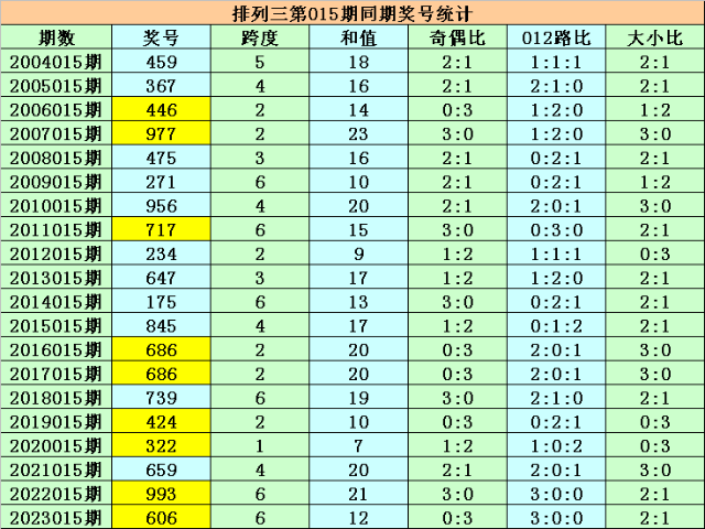 上期回顾:排列三第2023015期奖号为606,组选类型为组三,奖号大小比为2:1,012路比为3:0:0,奇偶比为0:3。