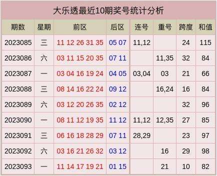 后区分析:近10期后区大小数据统计为13:7,大数走势较热。近10期后区奇偶数据统计为13:7,奇数走势较热,本期预测后区号码为:06、11。