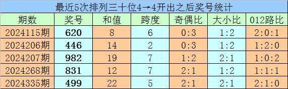1、最近两期排列三十位号码开出号码分别为4和4,历史上十位号码连续两期同时出现号码4和4的奖号共开出71期。最近五次下期开出号码为:620、446、982、831、499;