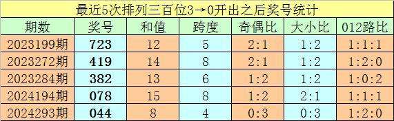1、排列三最近两期百位号码分别开出3和0,历史上百位号码连续两期分别开出3和0的奖号出现了67期。前五期开出之后其下期奖号分别为:723、419、382、078、044;