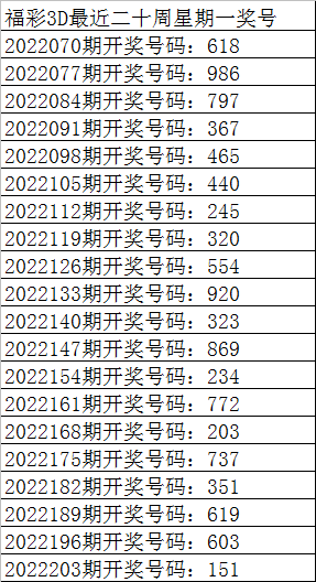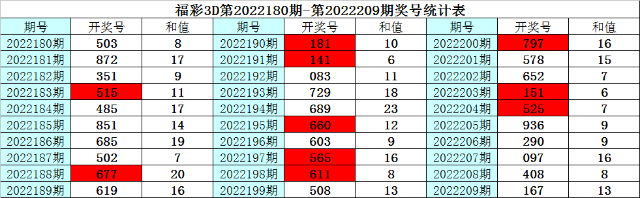 上期回顾:福彩3D第2022209期奖号为:167,其中奖号组选类型为:组六,奇偶比为2:1,大小比为2:1,012路比为1:2:0,和值为14,跨度为6。