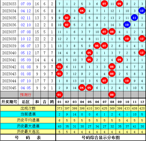 一区(01-12)分析:最近10期前区开出19个号码,号码奇偶比为5:14,偶号活跃。本期该区号码参考:02。