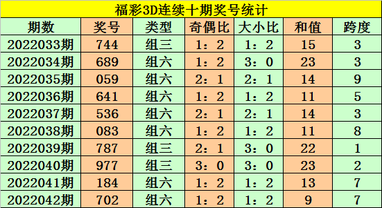 上期回顾:福彩3D第2022042期奖号:702。组六、大小小、奇偶偶。