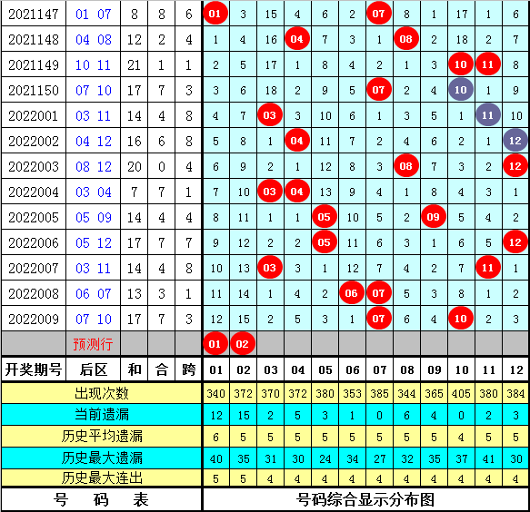 胜九天第2022010期大乐透后区遗漏分析:(遗漏值0-3为热号,遗漏值4-9为温号,遗漏值9以上为热号)