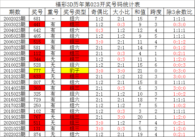 其中,组三号码开出7次,组六号码出现13次,上期奖号为组六号码,本期预计继续开出组六号码。
