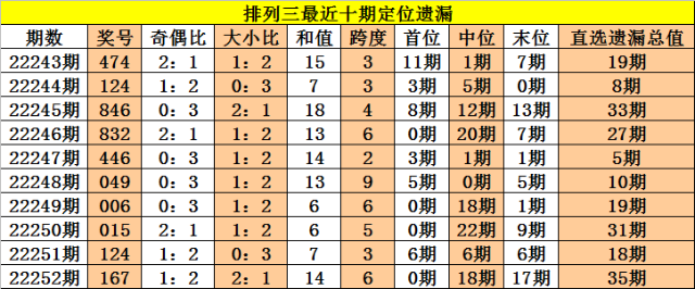 开奖回顾:排列三第2022252期奖号:167,定位直选遗漏值0期、18期、17期,遗漏总值为35期。