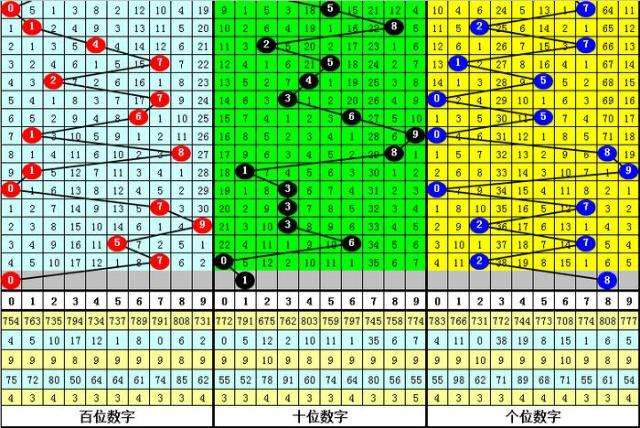 百位号码:第23178期-23182期奖号为:0-7-9-5-7,振幅为9点,分布较分散,本期看好百位走低,注意号码0。