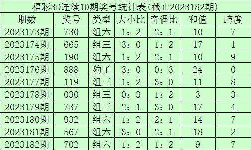 开奖回顾:福利彩票3D第23182期奖号开出702。奖号类型为组六,奇偶形态为奇偶偶,大小形态为大小小。