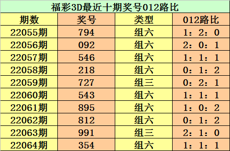 开奖回顾:第2022064期3D奖号为354。形态:组六,奇偶比2:1,大小比1:2,012路比为1:1:1。