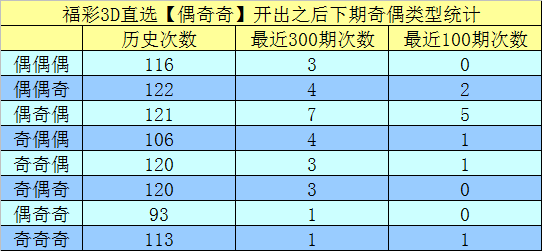 前7次出现偶奇奇类型奖号分别为:037、299、411、853、477、417、259,其下期分别开出奖号:643、870、292、954、070、663、298。