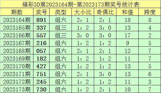 上期回顾:福彩3D第2023173期奖号:730。