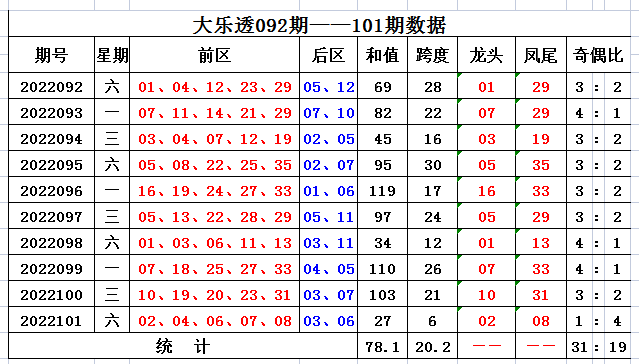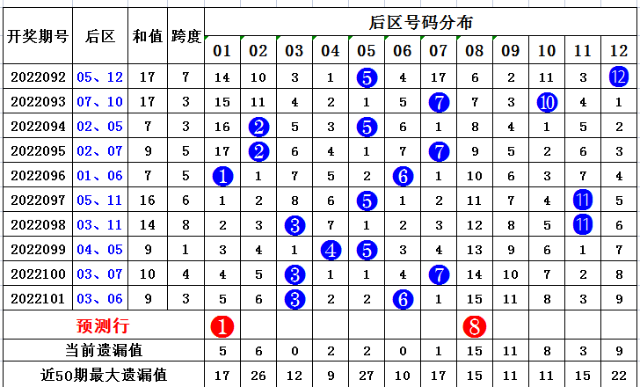 102期方元大乐透预测奖号:跨度分析