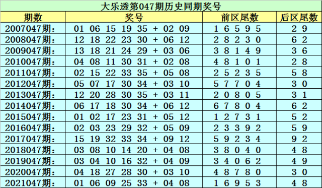 李太阳大乐透第2022047期历史同期前区尾数看号