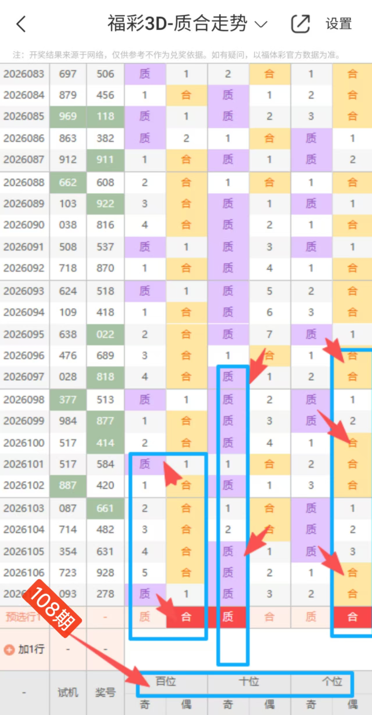 本期百位 十位 个位质合走势图分析: