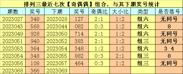 开奖回顾:排列三第2023068期开奖号码为:366。奖号类型为:组三,大小类型为:小大大,奇偶类型为:奇偶偶,无重号。