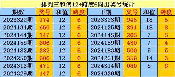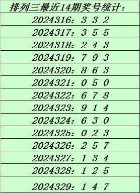 上期回顾:排列三第2024329期奖号:147。和值12,跨度6。