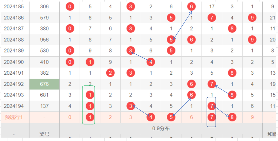 上期开奖数据解析,区间比例3926,重码2个,5期以下开出不含重码16个,冷码开出1个,在10期以上.尾数比例集中在1尾,5,8,9尾断,其他比例平均,奇偶比的区间很稳定.5期以下加重码达18个数,重点选码在5期以下,选码方式做出调整.以区间比,重码,尾数比,走势图为主要条件选码,先做出粗选,在总结.以此为据,推测195期.