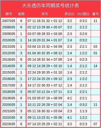 重号分析:历年同期中开出6次重号,去年同期奖号数据重号开出07,本期预测会开出重号:33。