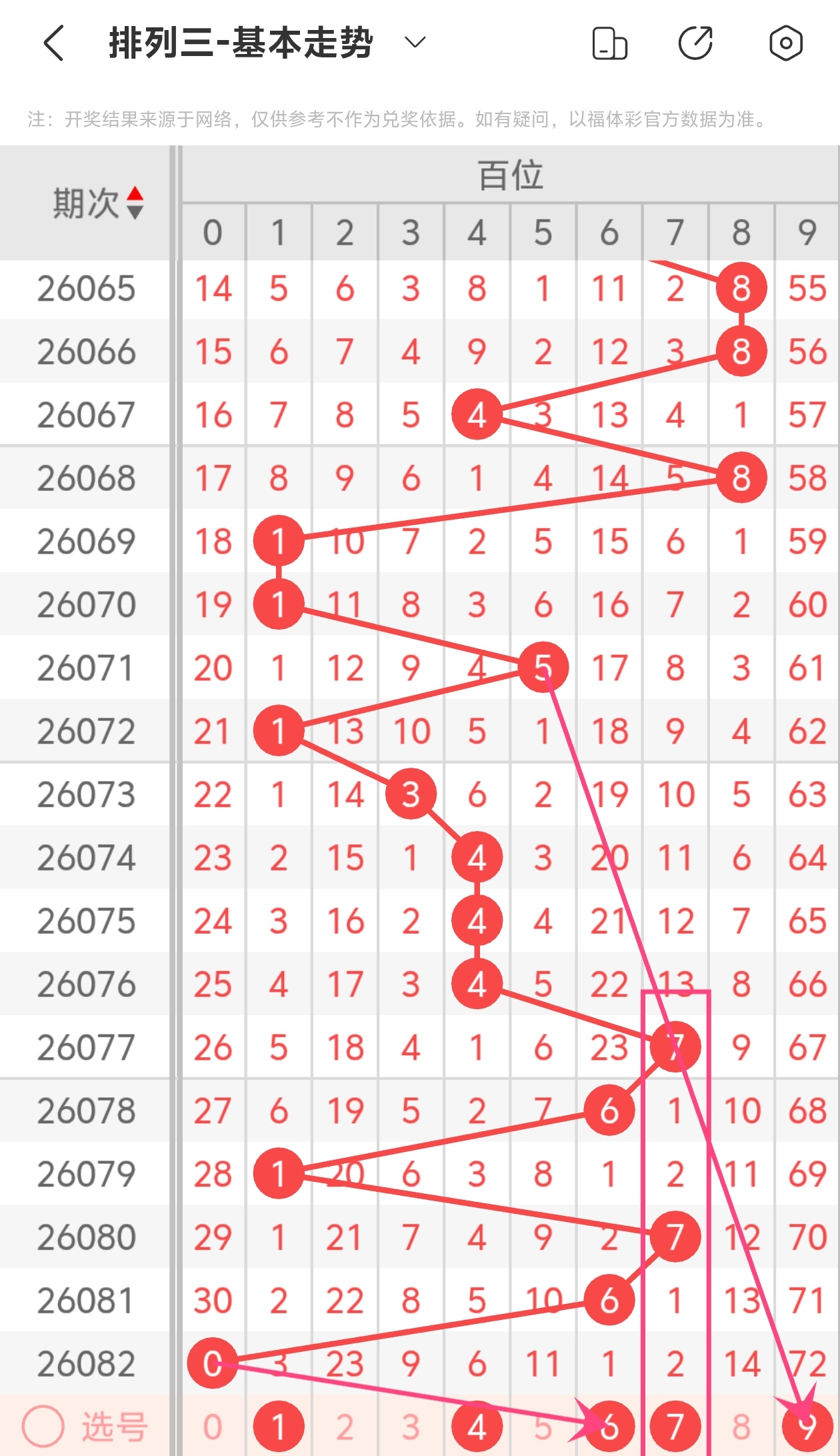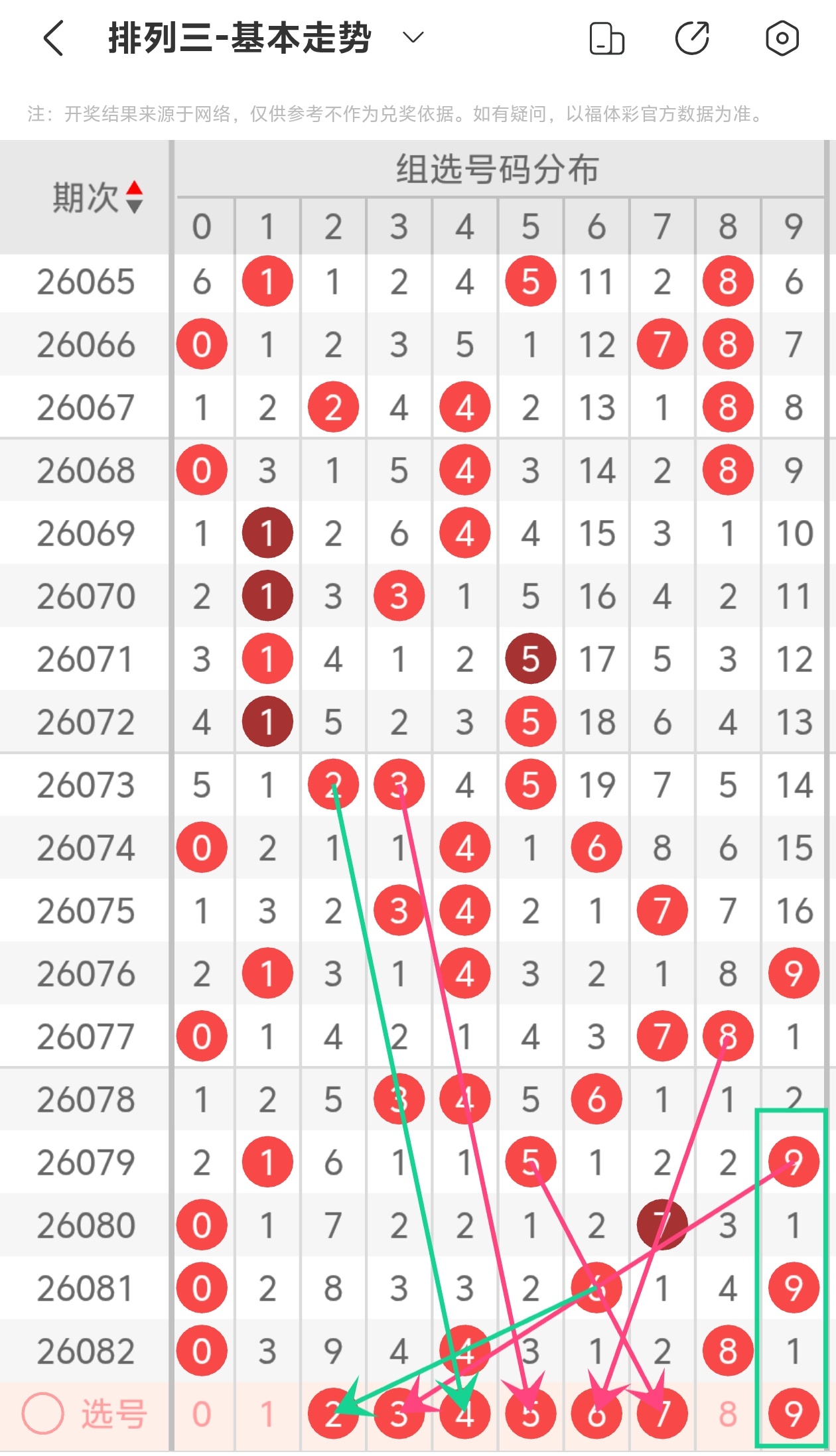 通过以上简单分析,我们看下26083期号码的定位分析: