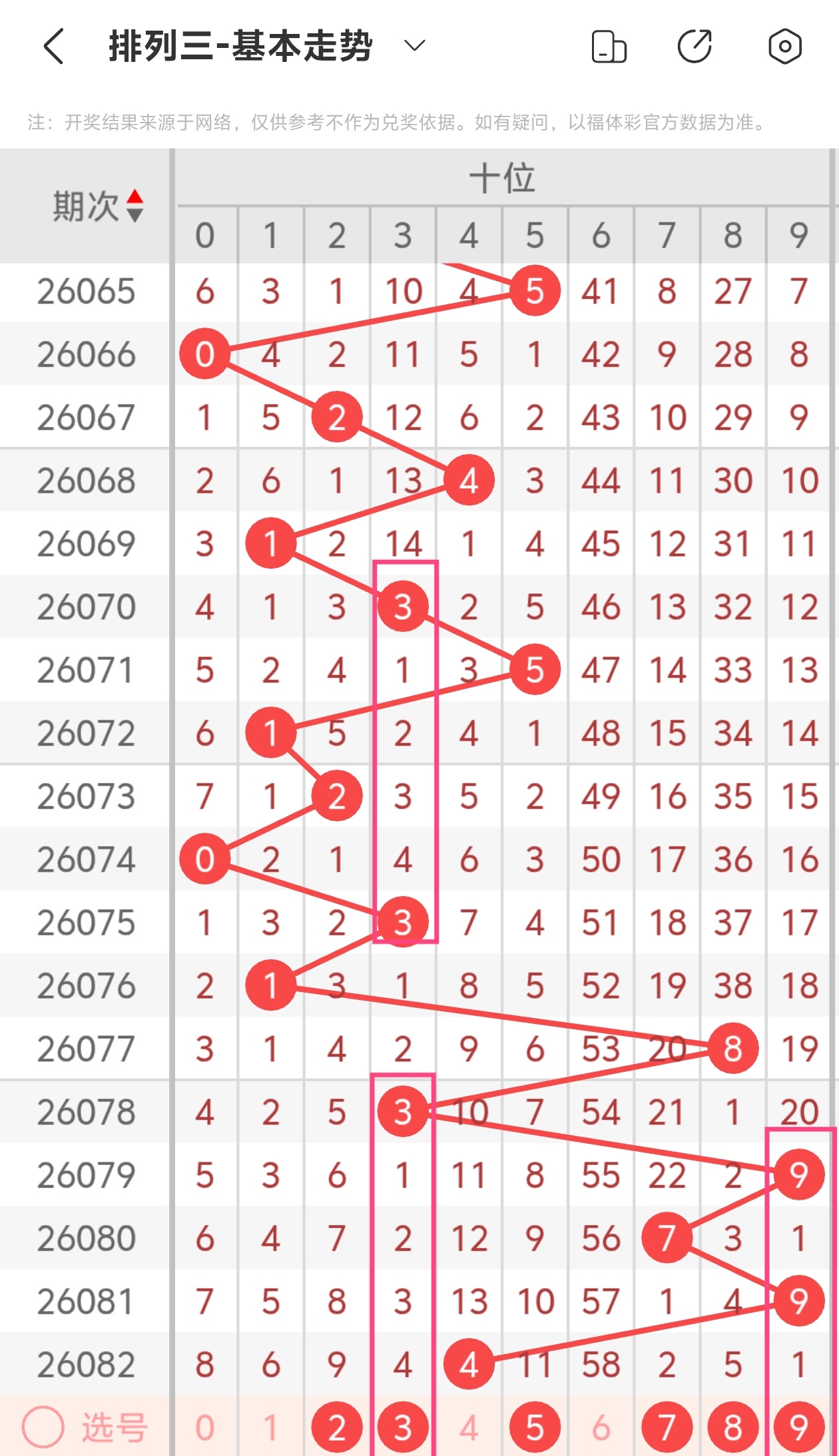 下面是体彩排列3的十位走势图分析