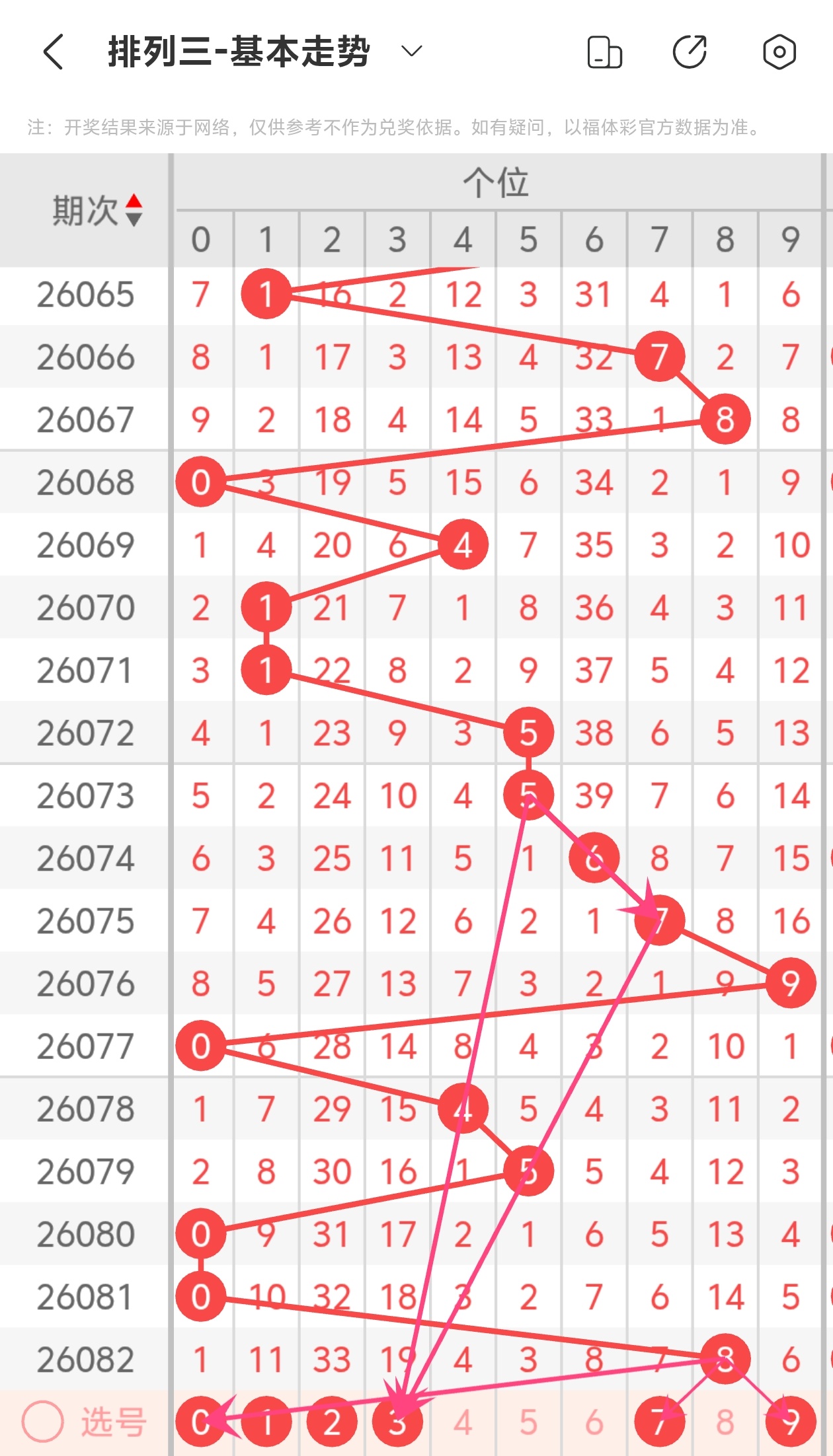 下面是体彩排列3的个位走势图分析