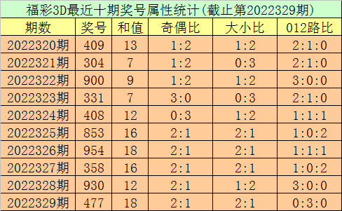 开奖回顾:第2022329期福彩3D奖号为477。奖号形态为组三,大小比为2:1,和值为18,奇偶比为2:1,012路比为0:3:0,跨度为3。