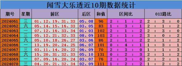 071期闻雪大乐透预测奖号:后区走势分析