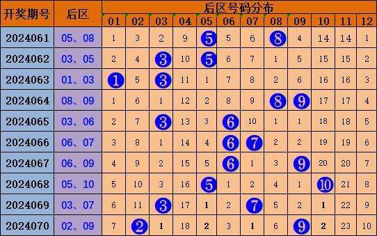 上期开出号码02 09为偶奇形态,近10期后区奇奇形态3次,奇偶形态3次,偶偶形态0次,偶奇形态4次,综合分析,本期预测推荐后区以偶奇形态开出,推荐号码06 11。
