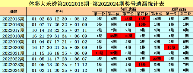 大乐透第2022024期奖号开出:01 02 11 30 35 + 01 12,各位奖号遗漏期数分别为:1期、8期、2期、3期、2期+4期、0期,前区遗漏总值为16期,冷温热码个数比为0:1:4。
