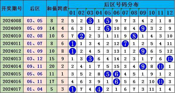 上期后区开出号码01 04,近50期冷热形态:冷冷组合开出8次,冷热组合开出,5次,热冷组合开出12次,热热组合开出25次,热热走势很高