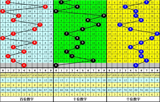 其中,号码0-9开出次数分别为:号码0开出3次、1开出5次、2开出4次、3开出1次、4开出6次、5开出3次、6开出6次、7开出1次、8开出1次、9开出0次。