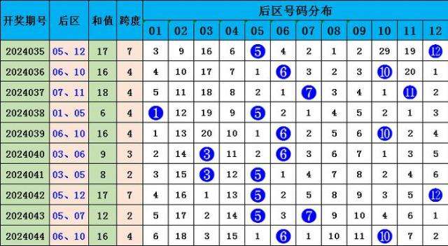 后区上期开出奖号06和10,为偶偶组合。近5期后区奇偶比为6:4,大小比为3:7。本期预计小大、偶奇组合热出,参考两码:04 11。